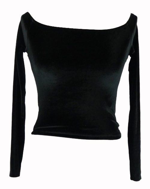 Dámské černé sametové crop triko s lodičkovým výstřihem FB Sister