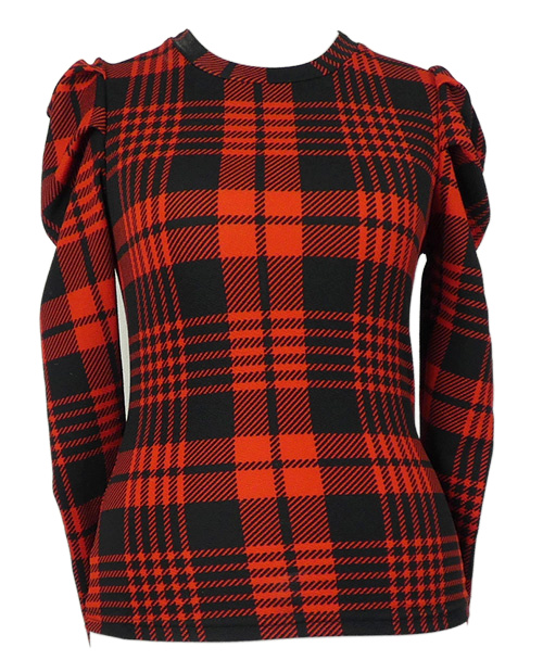 Dámské červeno-černé kostkované triko s balonovými rukávy Emery Rose