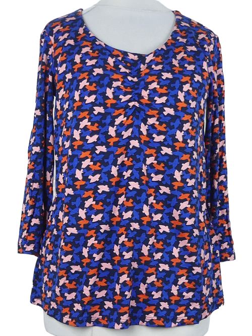 Dámské tmavomodro-červeno-růžové vzorované triko s ptáčky Crew Clothing