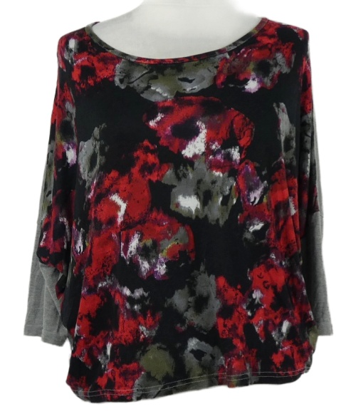 Dámské černo-šedo-červené květované volné triko Gina