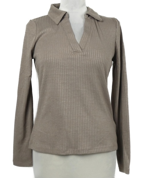Dámské béžové žebrované triko s límečkem F&F