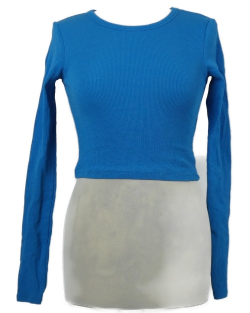 Dámské modré žebrované crop triko JJXX