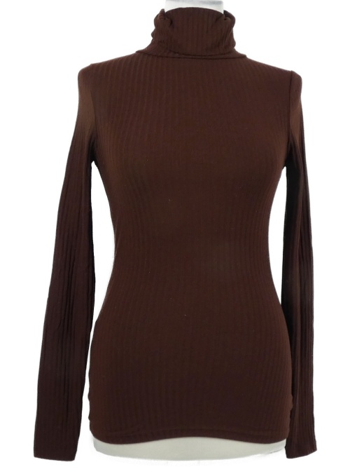 Dámské hnědé žebrované triko s rolákem New Look
