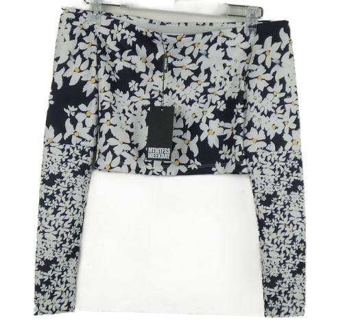 Nové - Dámské černo-bílé kytičkované crop triko s lodičkovým výstřihem Weekday