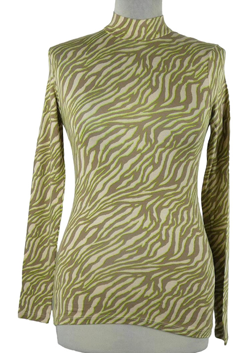 Dámské béžovo-limetkové vzorované triko se stojáčkem Amisu