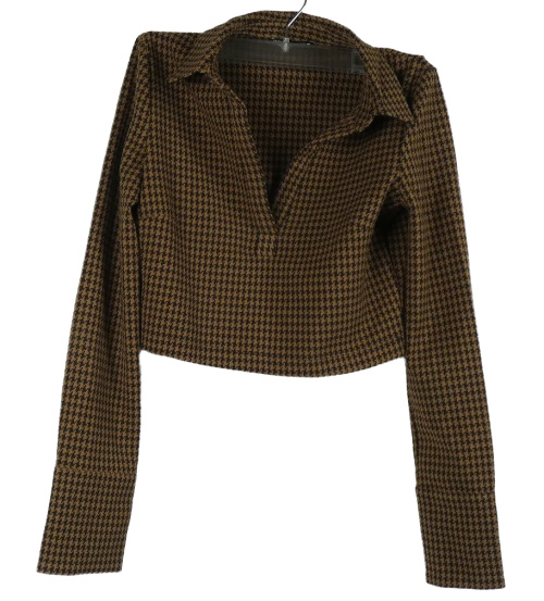 Dámské hnědé vzorované crop triko s límečkem Zara