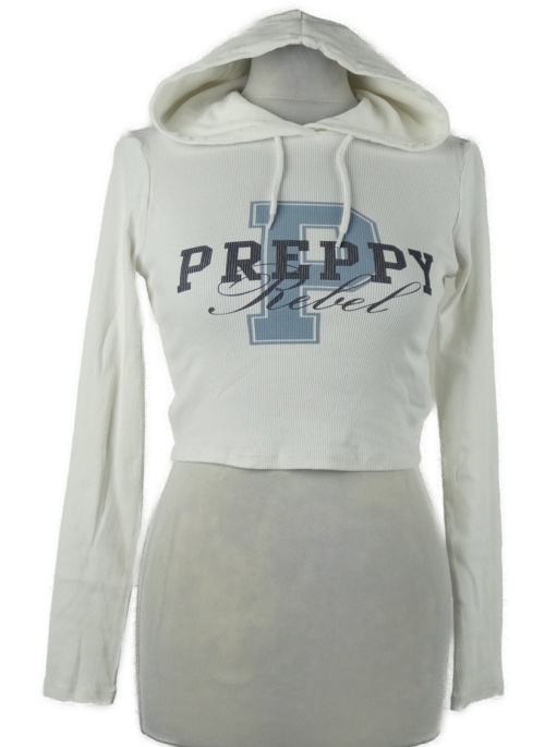 Dámské bílé žebrované crop triko s nápisem a kapucí Tally Weijl