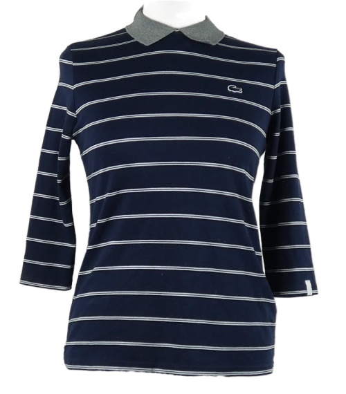 Dámské tmavomodré pruhované triko s límečkem Lacoste