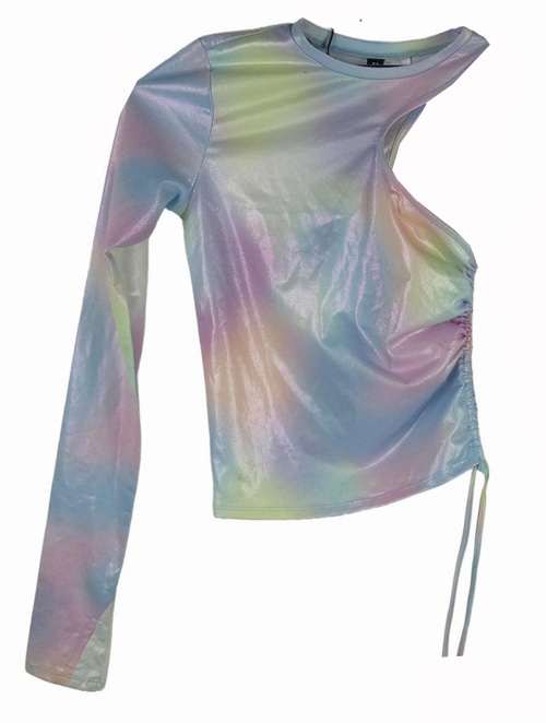 Dámské duhové třpytivé asymetrické crop triko se stahováním H&M