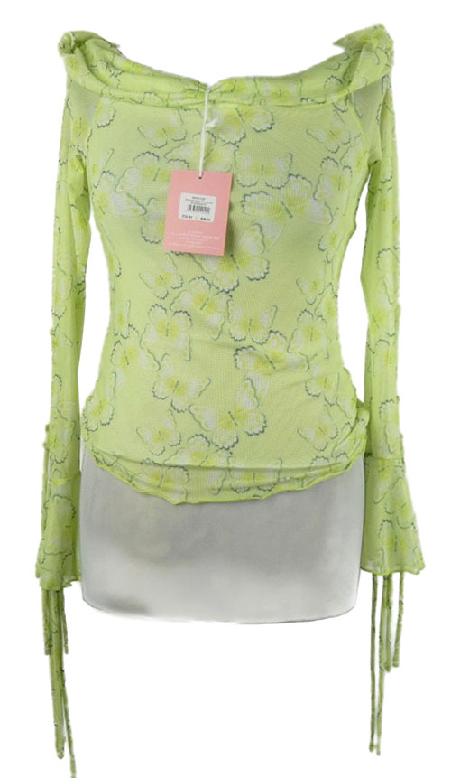 Dámské limetkové tylové triko s motýlky a komínovým límcem