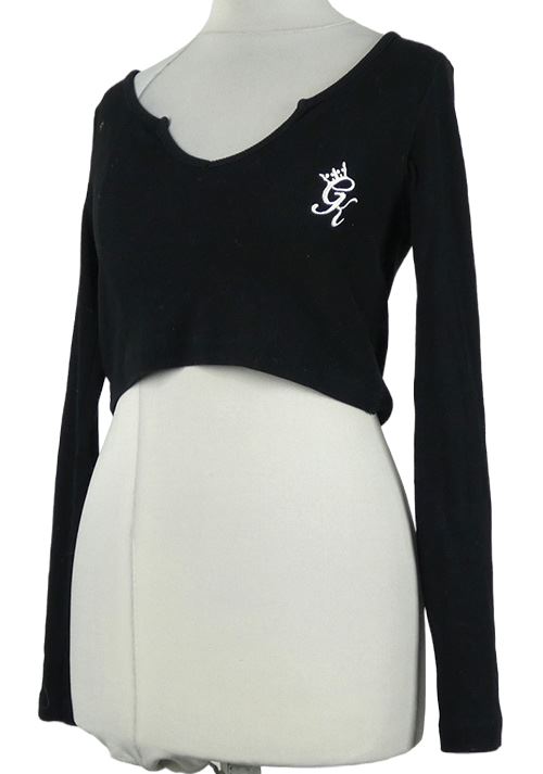 Dámské černé žebrované crop triko s logem GymKing