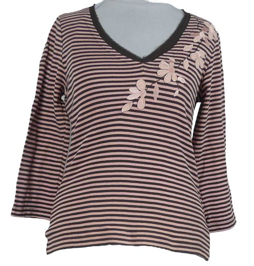 Dámské hnědo-růžové pruhované triko s kytičkami Next