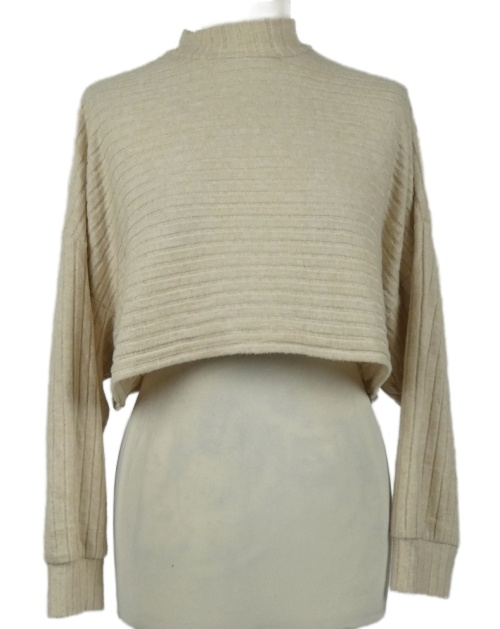 Dámské béžové úpletové žebrované triko Shein