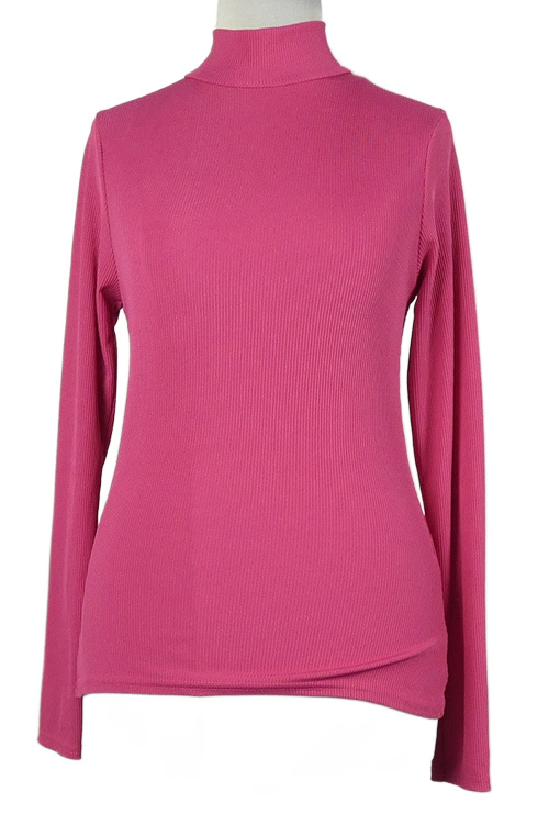 Dámské tmavorůžové žebrované triko s rolákem