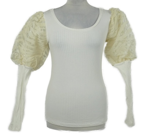 Dámské bílé žebrované triko s balonovými rukávy River Island