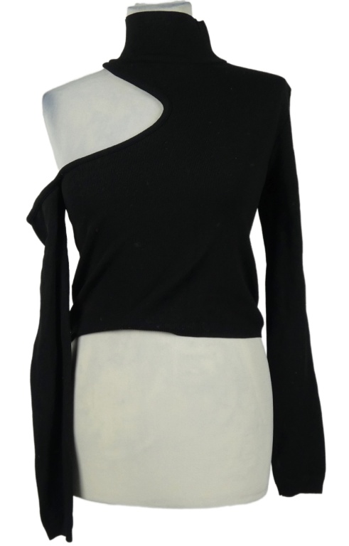 Dámské černé žebrované úpletové asymetrické crop triko s průstřihy Topshop