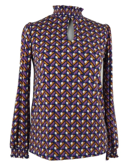 Dámská růžovo-modro-oranžová vzorovaná halenka se stojáčkem