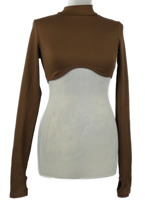 Dámské hnědé žebrované crop triko se stojáčkem H&M