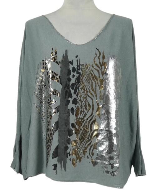 Dámské šedé úpletové triko s potiskem