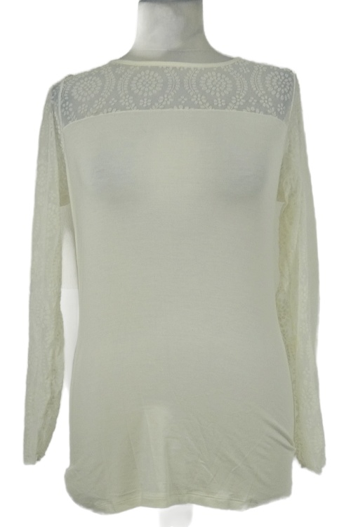 Dámské smetanové triko s tylovými vzorovanými rukávy