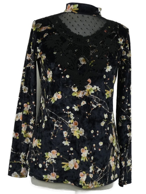 Dámské tmavomodré květované sametové triko s krajkovým výstřihem Rowen Avenue