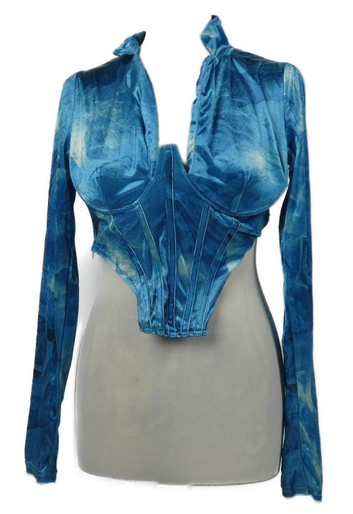 Dámské modré sametové crop triko PrettyLittle Thing