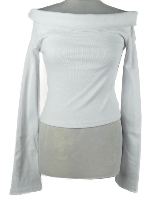 Dámské bílé žebrované crop triko s lodičkovým výstřihem MissPap