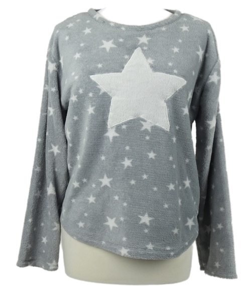 Dámské šedé hvězdičkované plyšové pyžamové triko Janina