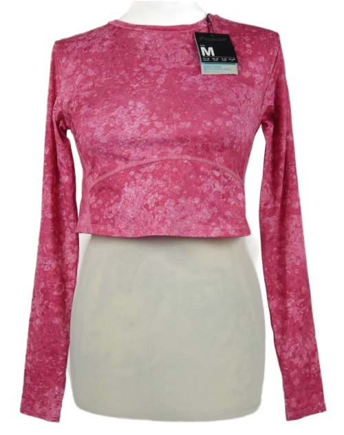 Nové - Dámské tmavorůžové vzorované sportovní crop triko Workout