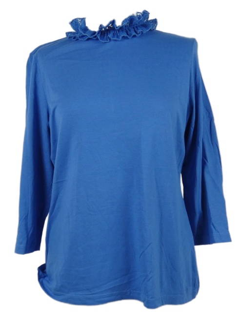 Dámské modré triko s krajkovým límečkem Savida