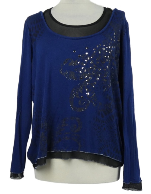 Dámské tmavomodro-černé triko s potiskem a cvočky Crisca