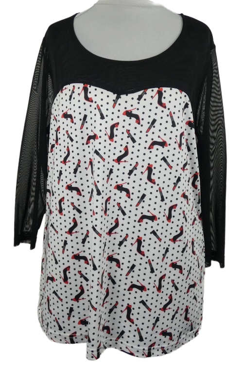 Dámské bílo-černé triko s potiskem a tylovými rukávy
