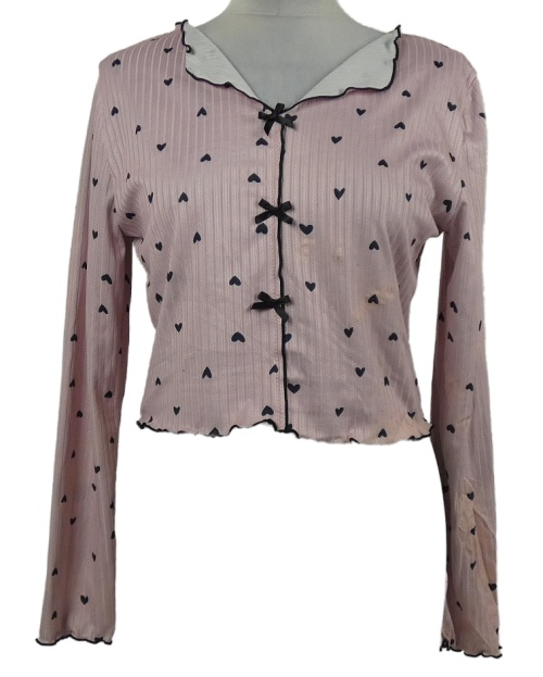 Dámské světlerůžové žebrované pyžamové crop triko se srdíčky