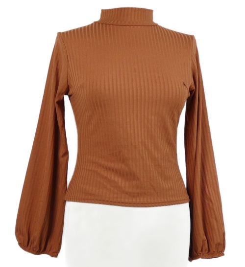 Dámské cihlově červené žebrované triko s rozšířenými rukávy Boohoo