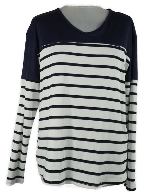 Dámské bílo-tmavomodro-černé pruhované triko Shein