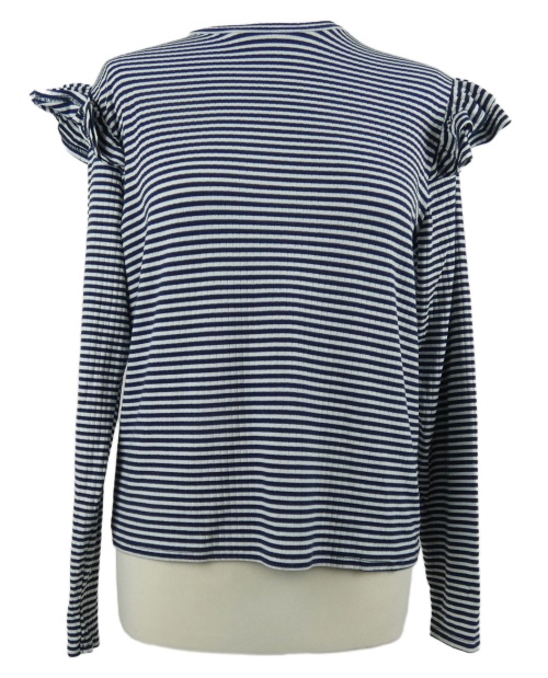 Dámské bílo-tmavomodré proužkované žebrované triko s volánky George