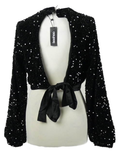 Dámské černé flitrové sametové crop triko na zavazování Boohoo