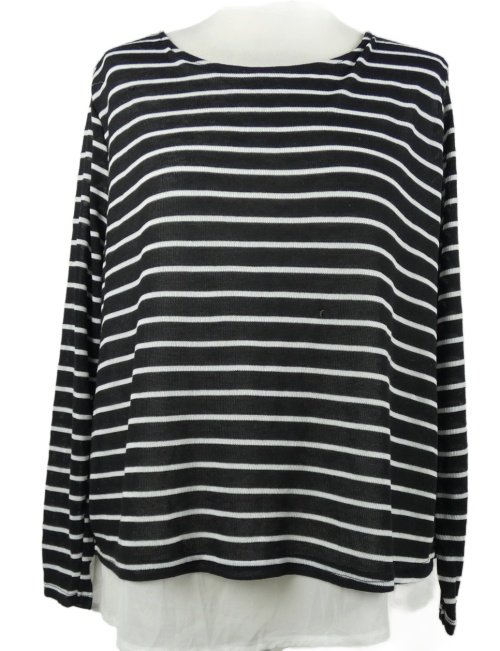 Nové - Dámské černo-bílé pruhované úpletové triko s šifonovou vsadkou Atmosphere