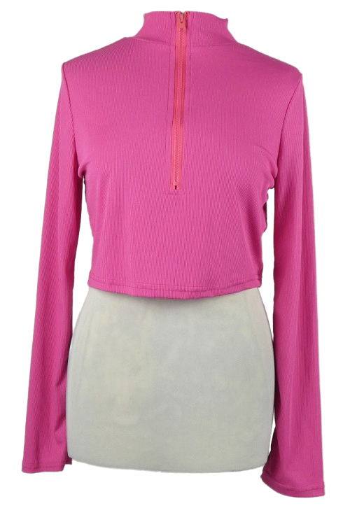 Dámské růžové žebrované crop triko s rolákem a zipem Shein