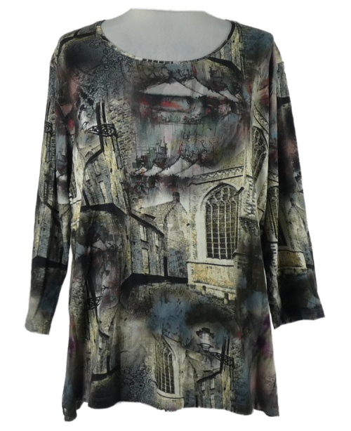 Dámské tmavošedé vzorované triko s potiskem