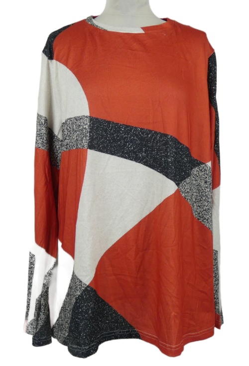 Dámské červeno-bílo-černé vzorované úpletové triko