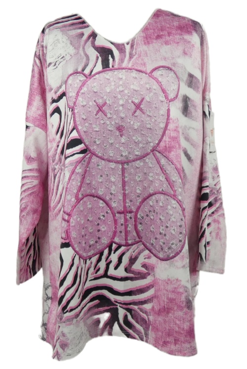 Nové - Dámská růžovo-černé vzorované triko s medvídkem