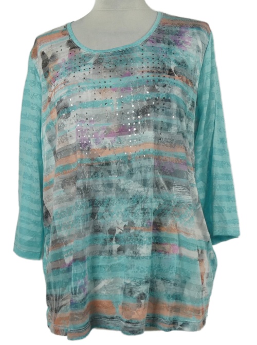 Dámské tyrkysové pruhované triko s potiskem Bonita