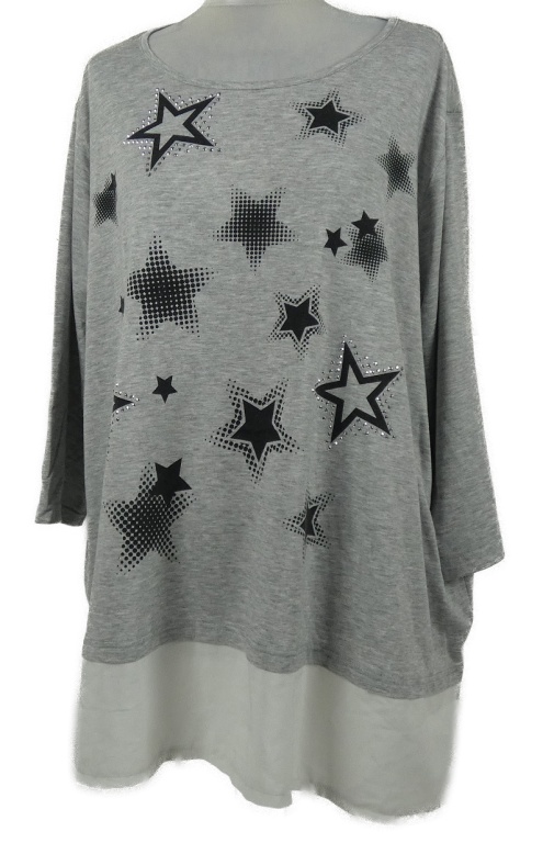 Dámská šedo-bílá tunika s hvězdami a kamínky Janina vel. 54