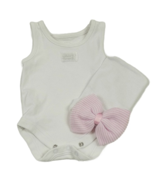 2set - Bílé body s nášivkou + bílá čepice s mašlí