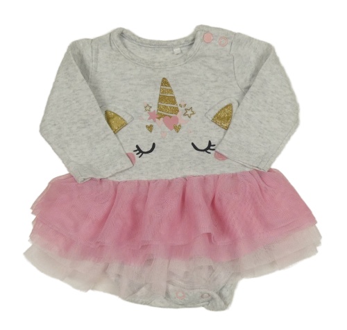 Šedé body s jednorožcem a růžovou tylovou sukní Nutmeg