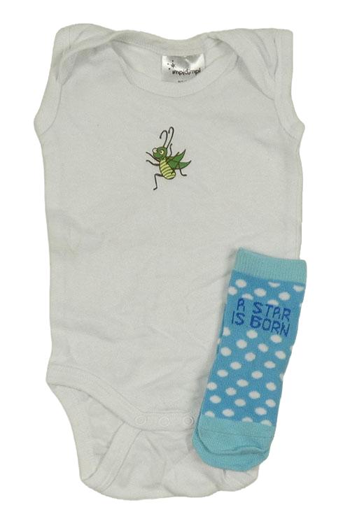 2set - Bílé body s hmyzem + modré puntíkaté ponožky s nápisem
