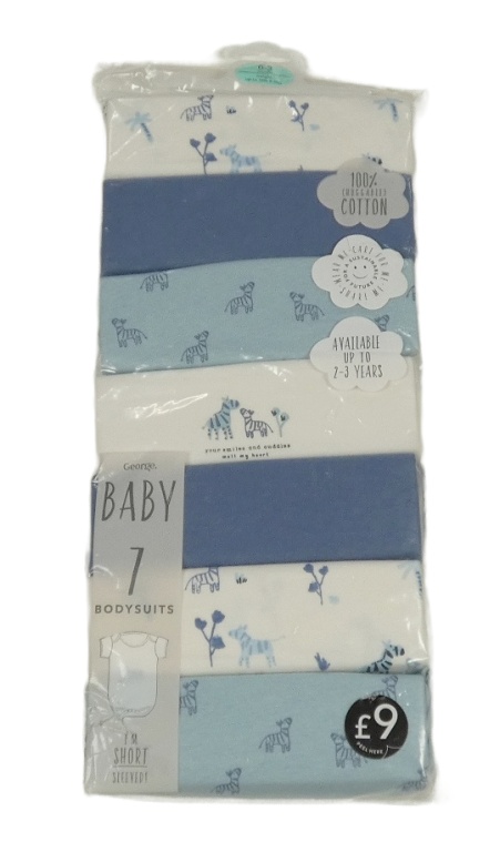 Nové - 7x - Body se zebrami - 3x - Bílé, 2x- tmavomodré, 2x- modrošedé George