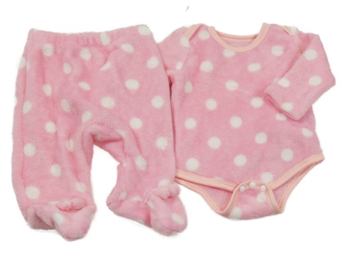 2set - Světlerůžové puntíkaté chlupaté body + polodupky