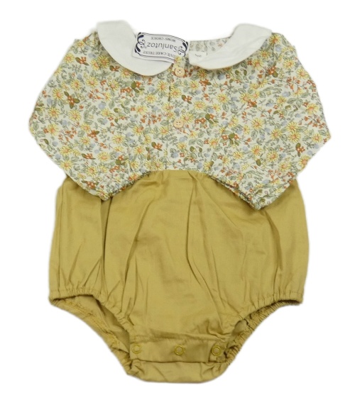 • Nové - Bílo-okrové plátěné body s kytičkami a límečkem